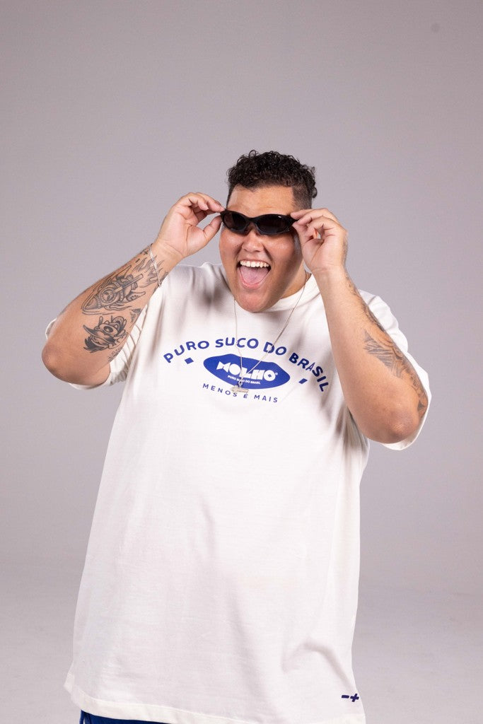 Com estampa centralizada em azul e tipografia retrô, a peça é um mix de conforto e personalidade — perfeita pra quem veste o bom humor e a originalidade brasileira no dia a dia.